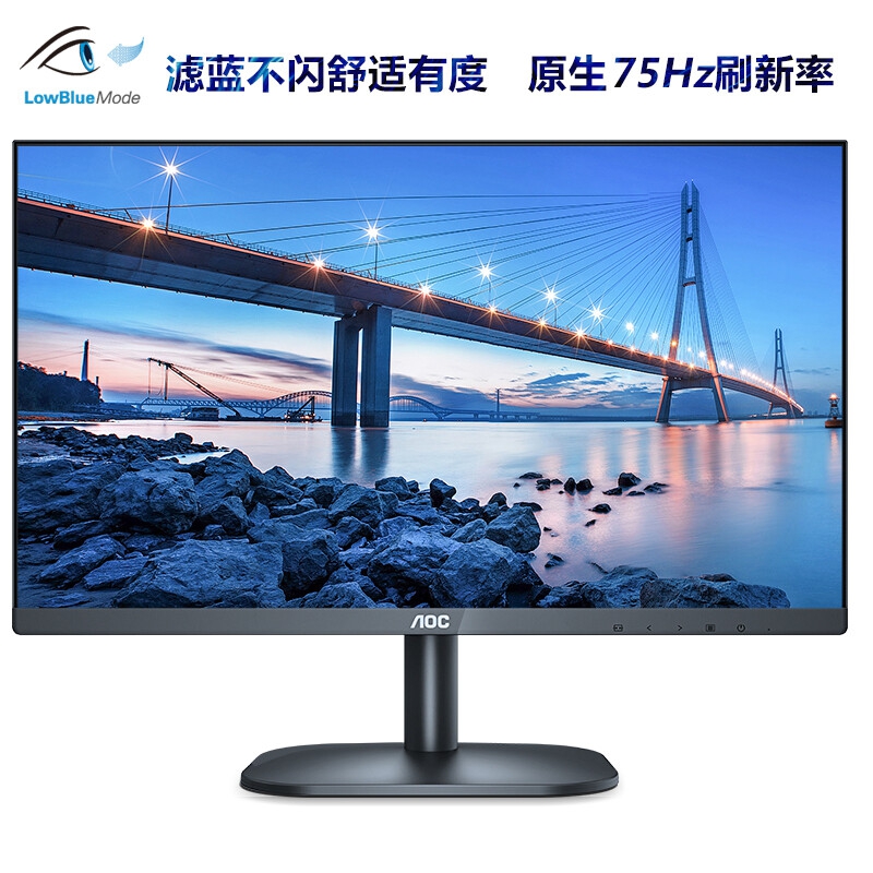 AOC 27B2H 液晶顯示器 27英寸 75Hz 微框 IPS技術屏 廣視角 低藍光愛眼 可壁掛 玄英質感黑 電腦辦公液晶顯示器